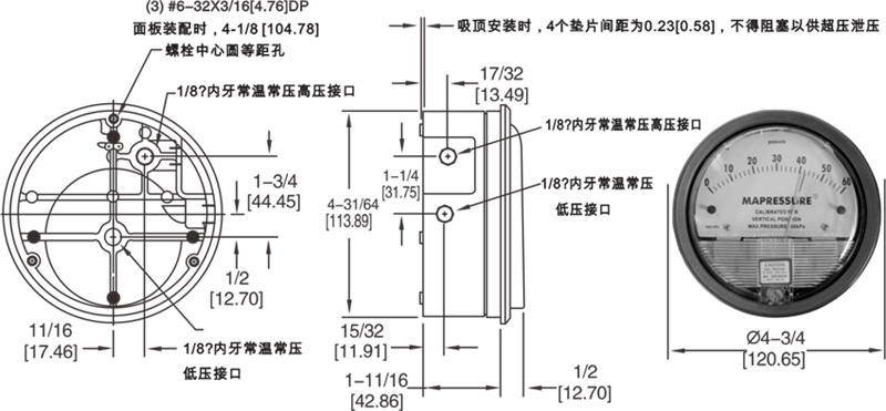 毫米水柱(mmH2O),英寸汞柱符號為 inHg, in.WC (英寸水柱)等。